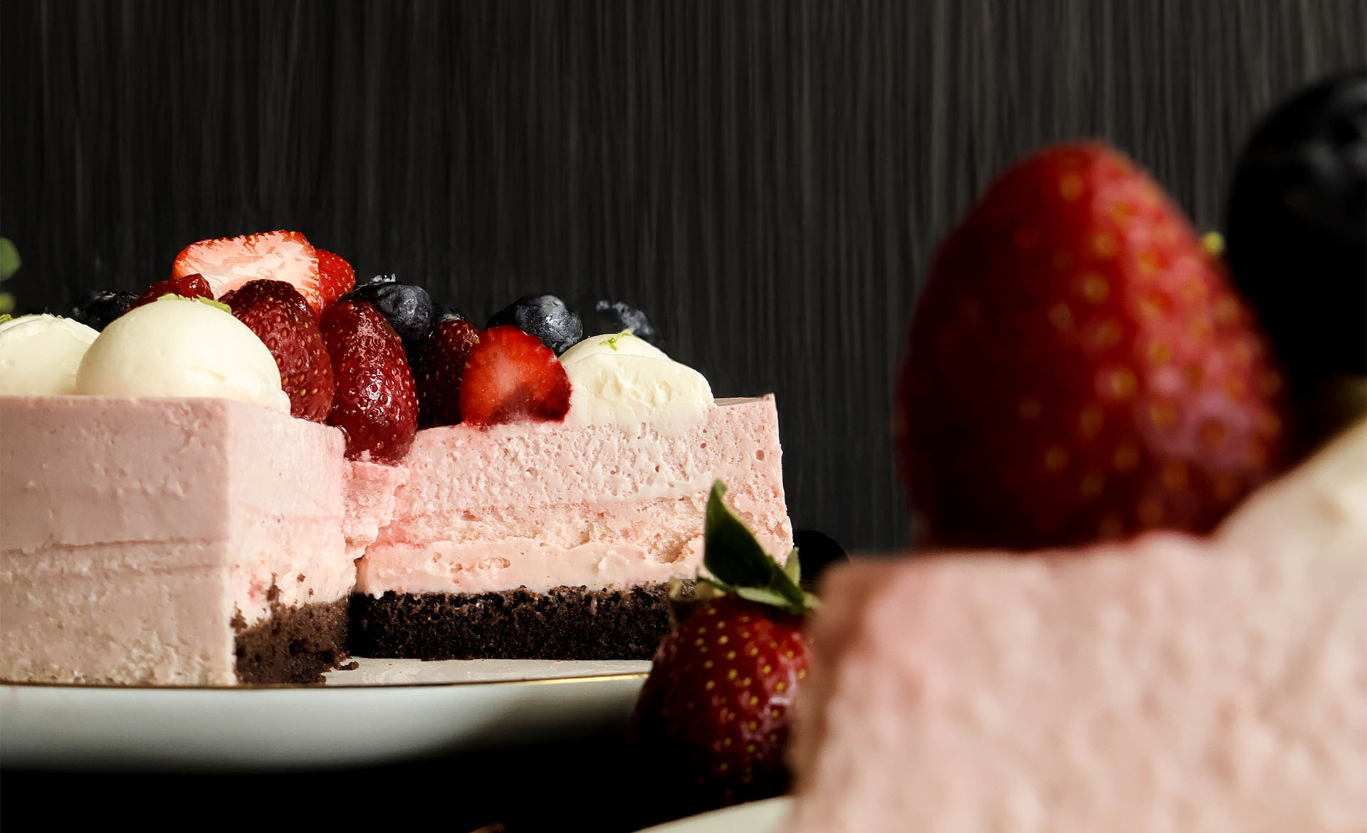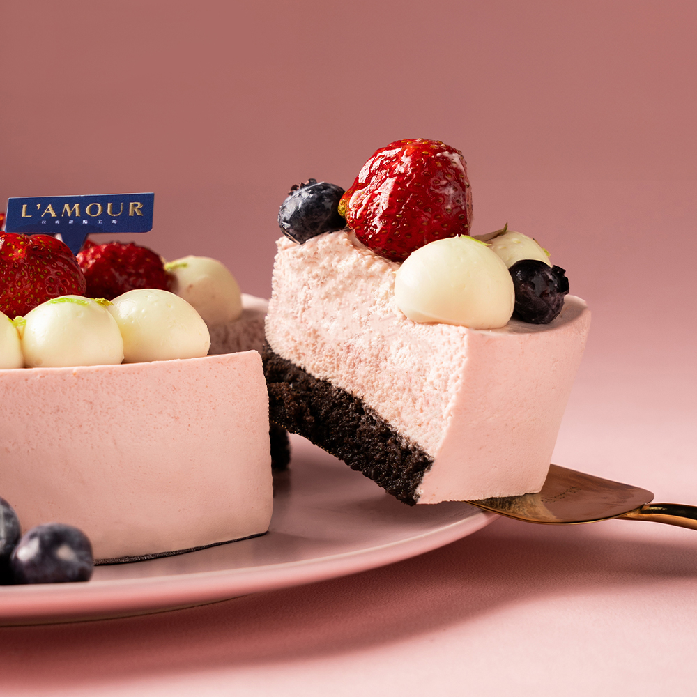 搭配中層的草莓重乳酪以及下層的可可海綿蛋糕